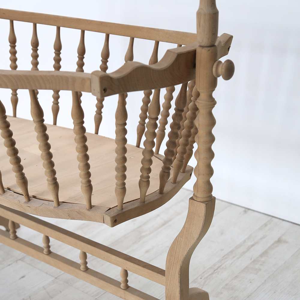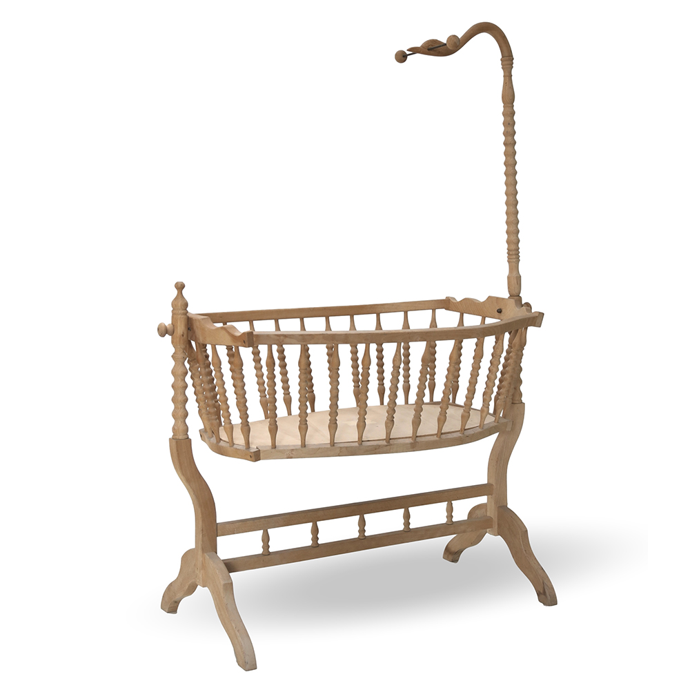 Culla in legno di faggio al grezzo.