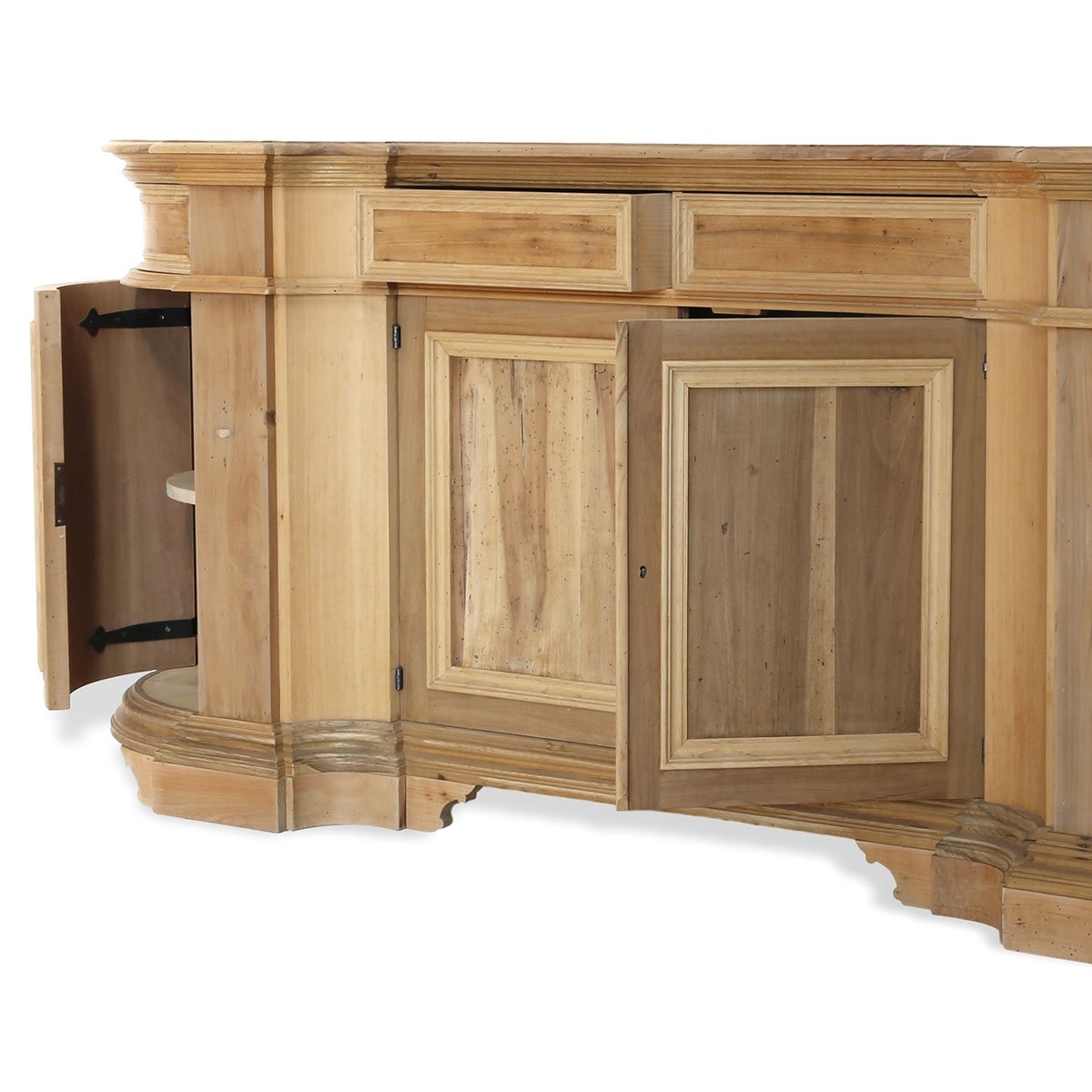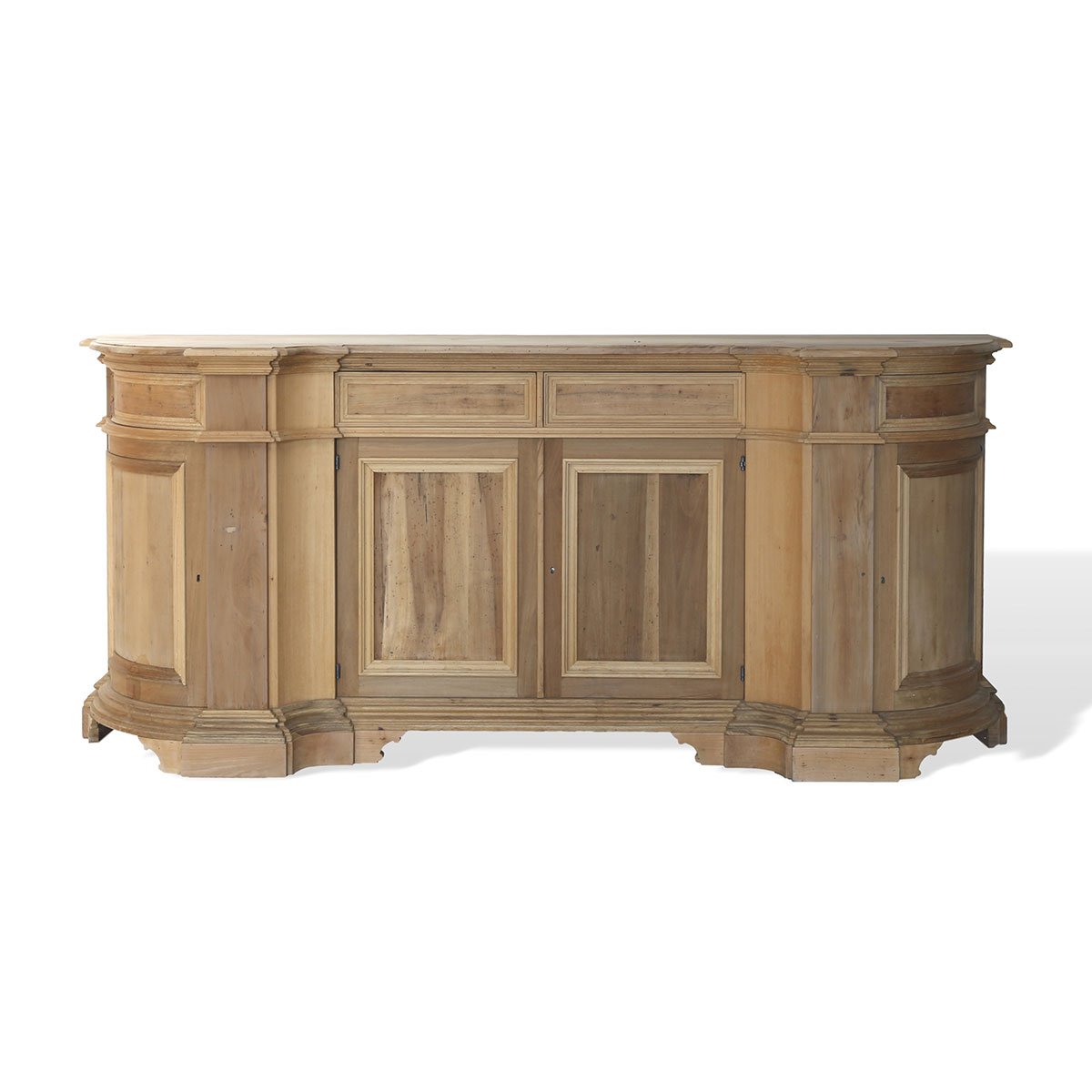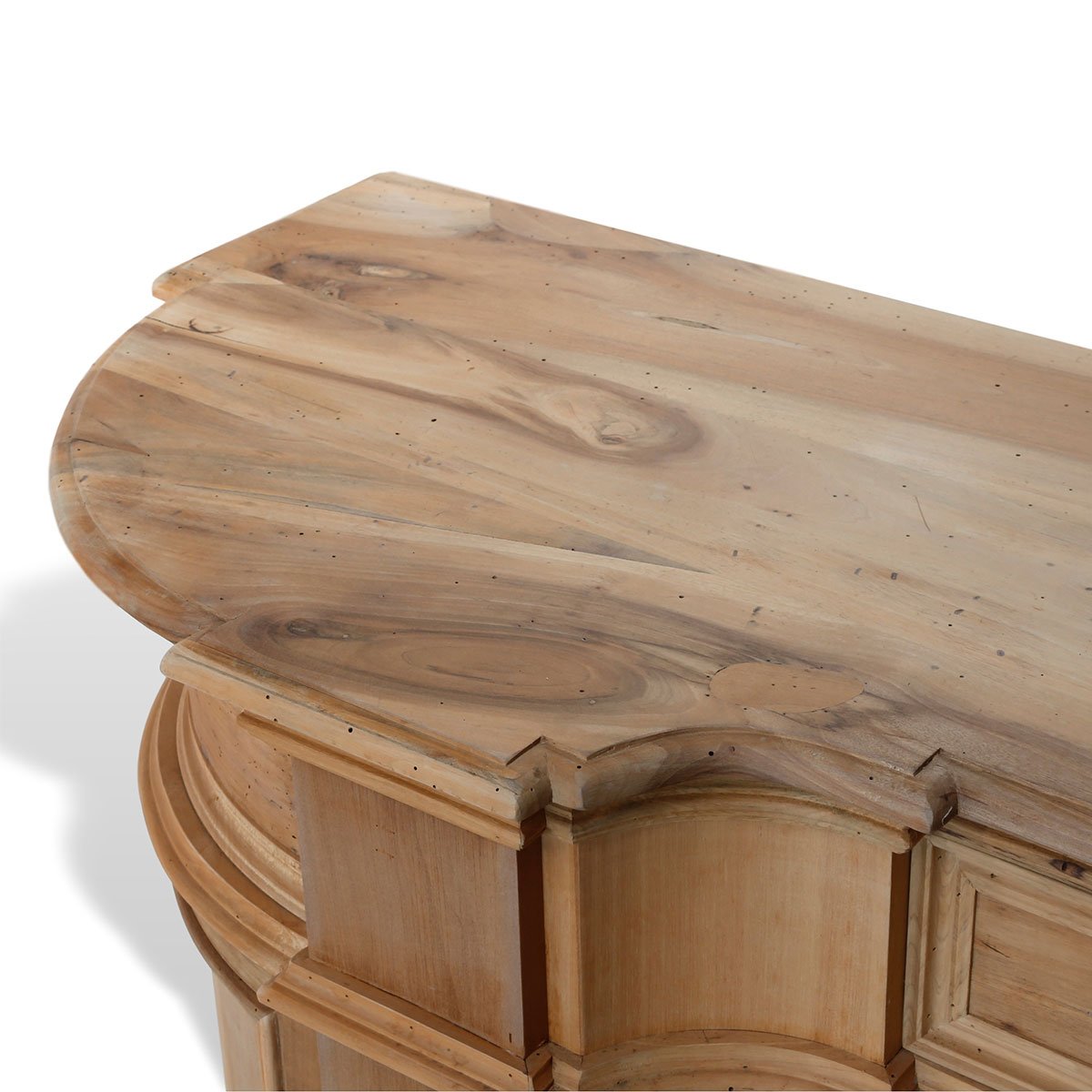 Credenza sagomata in Noce con n° 4 cassetti e n° 4 ante battente.