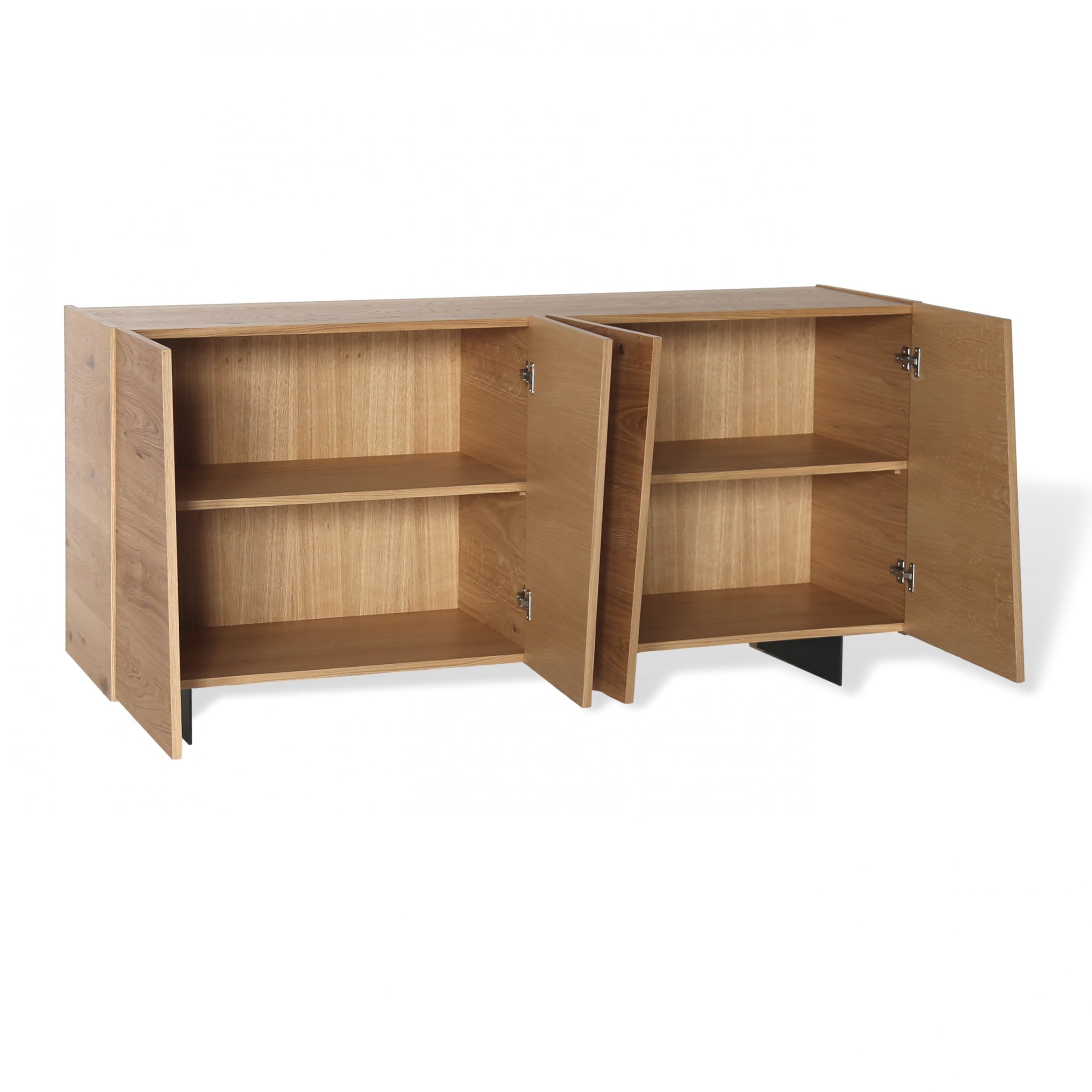 Mentre il taglio inclinato delle ante dona movimento e originalità a questa proposta per il living.