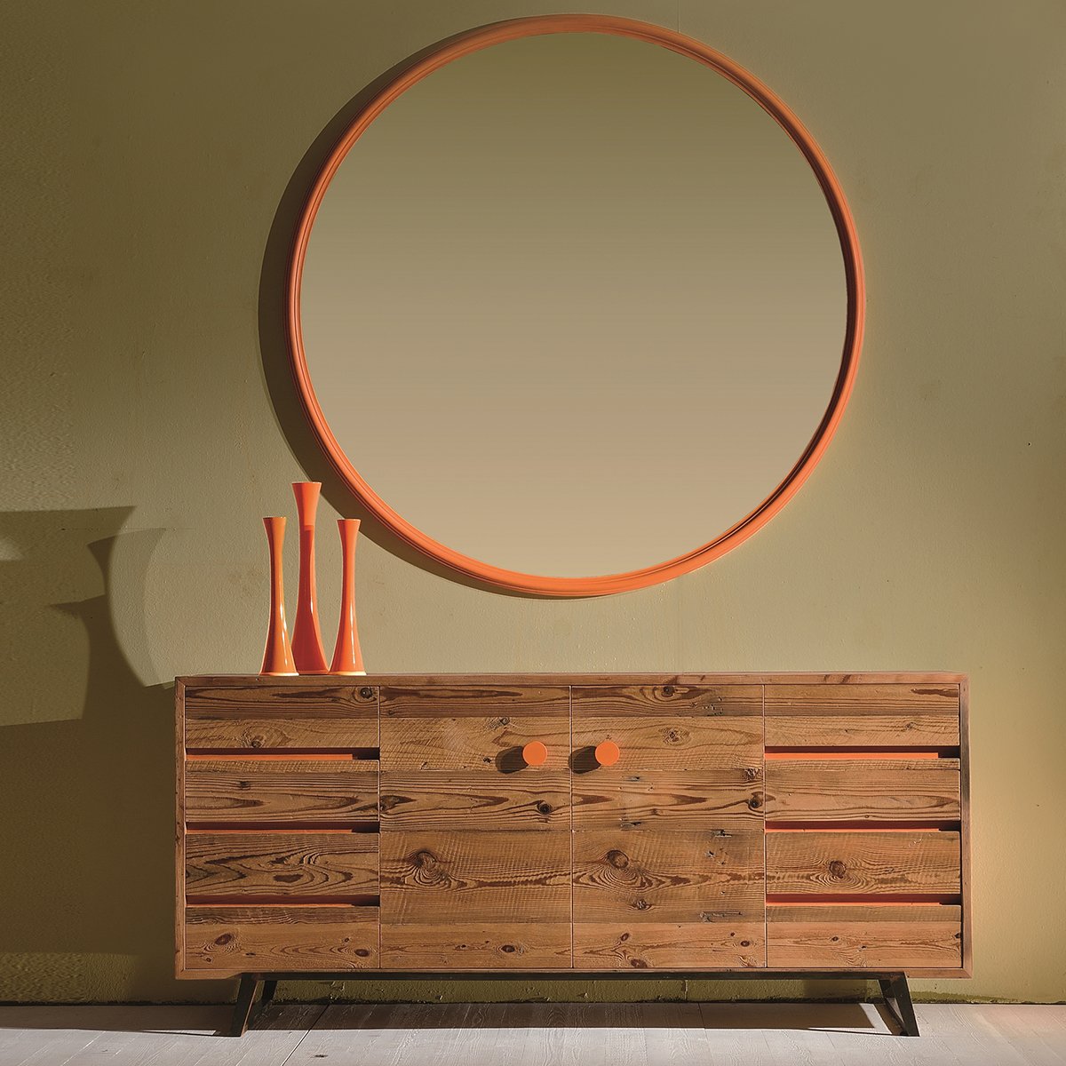 Credenza realizzata in Abete di recupero con n° 2 ante battente e n° 8 cassetti.