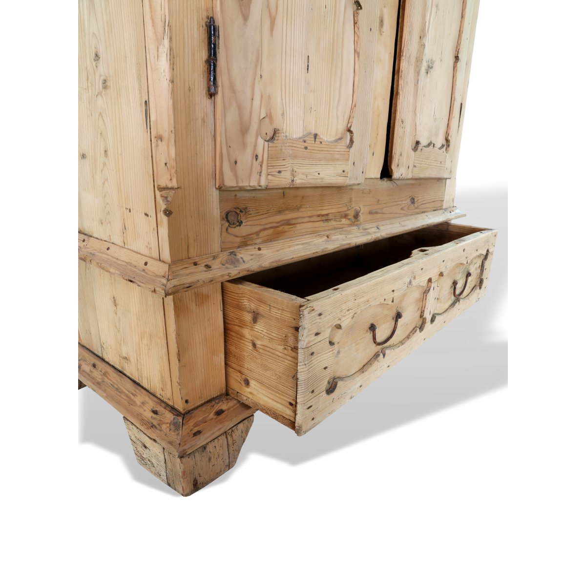 Il vero gioiello di questo armadio è l’ampio cassetto sottostante. Oltre a essere estremamente capiente, questo cassetto nasconde un affascinante meccanismo in legno chiamato “segreto”, che permette di bloccarlo in modo sicuro. Questa caratteristica unica non solo aggiunge un elemento di mistero e curiosità, ma offre anche una sicurezza extra per i tuoi oggetti più preziosi. Unendo la bellezza delle lavorazioni antiche alla praticità e all’ingegno nascosto, questo armadio in abete austriaco dei primi del ‘900 è un’aggiunta di sicuro valore per qualsiasi ambiente, dalla camera da letto allo studio o un ingresso importante.