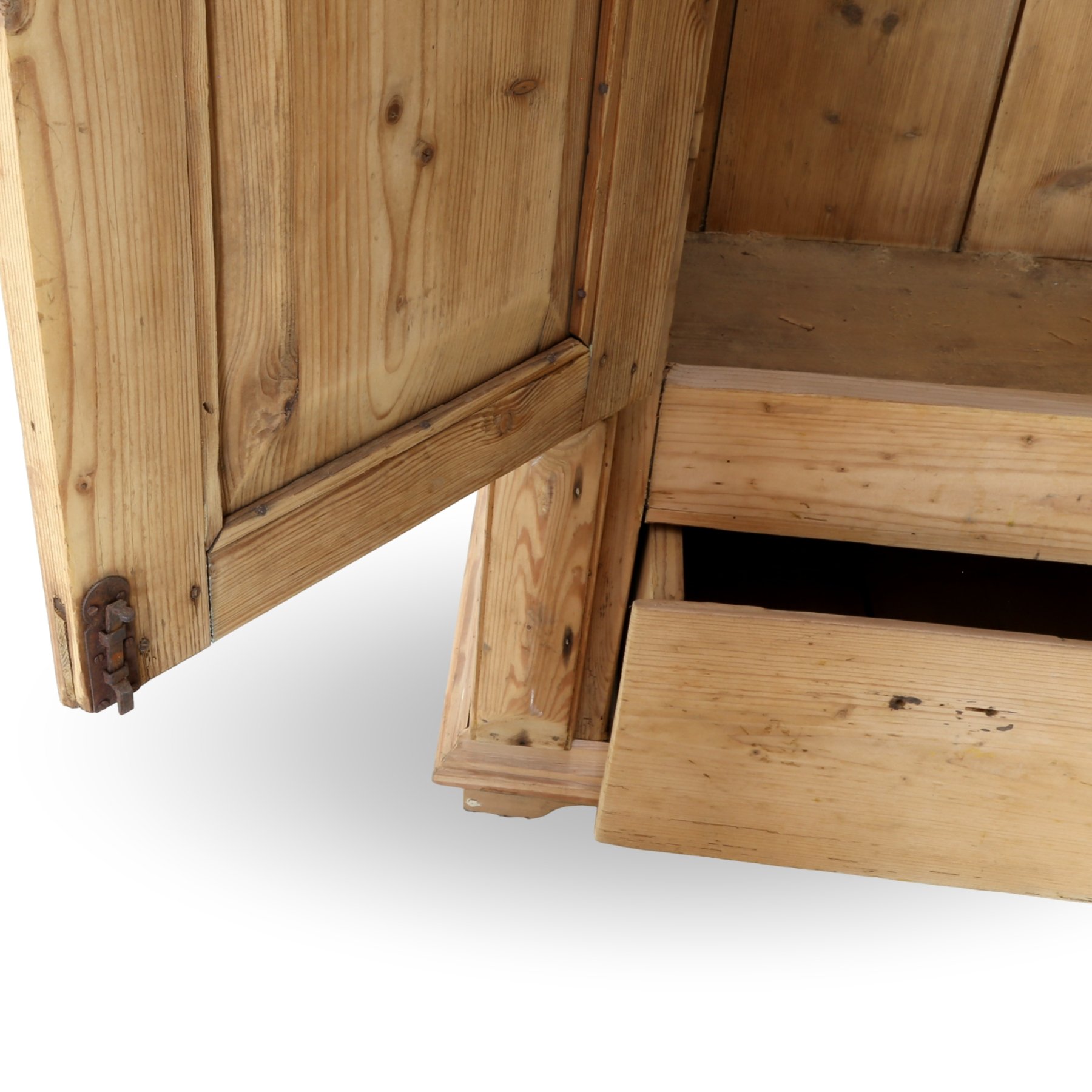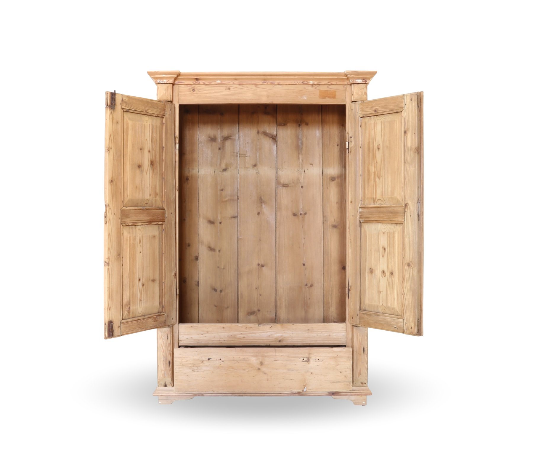 Il design di questo armadio è pensato per la massima praticità: oltre all’ampio spazio interno nascosto dietro le ante, offre un generoso cassettone nella parte inferiore. Questo elemento aggiuntivo è perfetto per riporre biancheria, accessori o qualsiasi oggetto desideri tenere in ordine ma facilmente accessibile, combinando l’estetica d’epoca con le esigenze di spazio contemporanee. Ideale per la camera da letto, un ampio ingresso o persino un soggiorno, questo armadio antico in Abete è un investimento in un mobile che unisce eleganza, storia e un’incredibile capacità contenitiva.